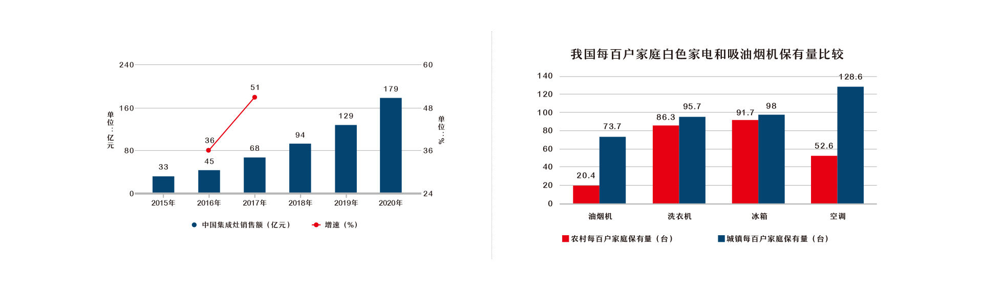2019年建材和家電行業整體上都比2018年有明顯滯緩和下降,但廚電行業卻逆勢高速增長,根據統計表明,國內廚電產品百戶保有量遠低于其他產品,有著巨大的市場發展前景。