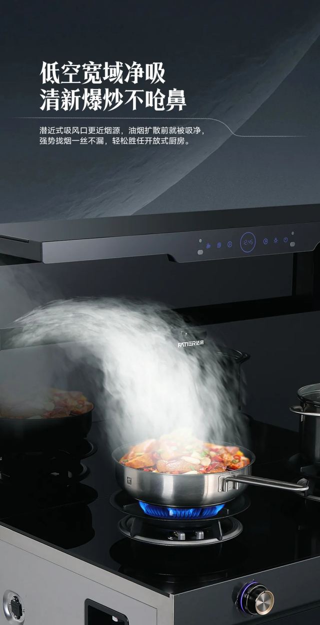 法帝X5ZK蒸烤一體集成灶采用了潛近式吸風口,源點低吸,煙源更近,吸得更凈,從根源防止油煙擴散,強勁動力瞬吸油煙不撲臉,高效解決廚房油煙難題,呵護她的美麗容顏和健康。