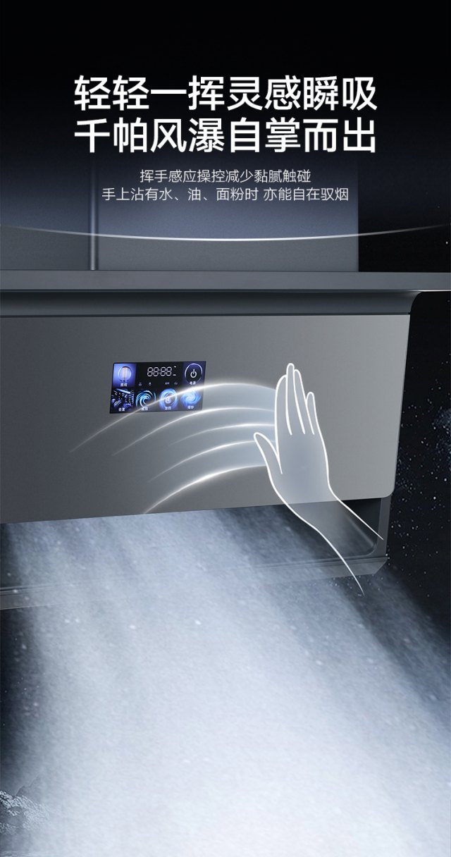 從此再也不用擔心手油、手濕弄臟煙機面板,保持機身干凈,真正做到解放雙手,帶來全新智能化、科技化的下廚體驗。